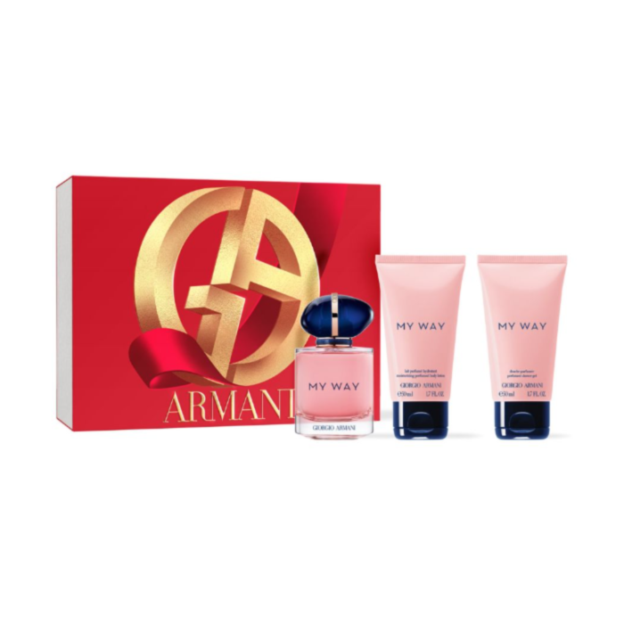 Translating a journey of self-discovery and serendipitous encounters into an assemblage of worldly notes, Armani’s My Way eau de parfum encapsulates the spirit of finding yourself within an elegant elixir. Intermingling notes of Madagascan vanilla and Egyptian orange blossom with sweet Indian jasmine and musky Virginian cedarwood, the floral fragrance envelops you with a lingering, feminine aroma. Discover the eau de parfum, shower gel and body lotion in this set to enjoy the floral aura for longer.