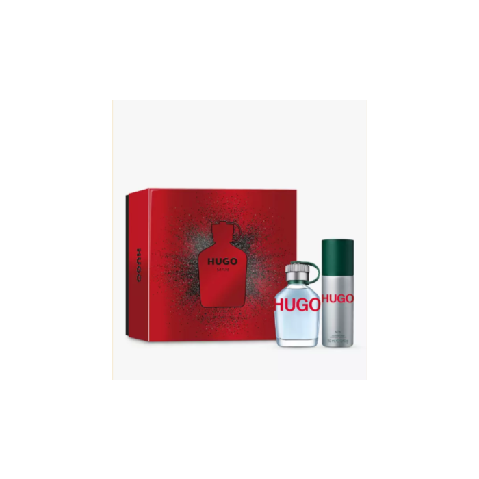 Product description Give him a unique gift this Christmas season, with the irresistible HUGO MAN Eau de Toilette gift set. Inspired by the new BOSS identity, this red-wrapped gift set is the ultimate gift for your loved ones. Capturing the spirit of a confident go-getter, HUGO MAN is an aftershave fragrance for a man who constantly pushes the boundaries. The men's Eau de Toilette delivers an energising hit of fresh, crisp green apple, twisted with vibrant herbal aromas and the smoky, earthy scents of a wild forest. Presented in a sleek, modern bottle, the aromatic fragrance is designed for men on the move. HUGO MAN Deodorant Spray keeps odour at bay while leaving skin lightly fragranced with the line's distinctive aromatic scent. : or Fragrance Type-Eau de Toilette Gift Set Type-Fragrance Sets Fragrance Range-Man Brand-HUGO BOSS Scent-Fruity Beauty Category-Gift Sets Scent Longevity-Moderate How to use