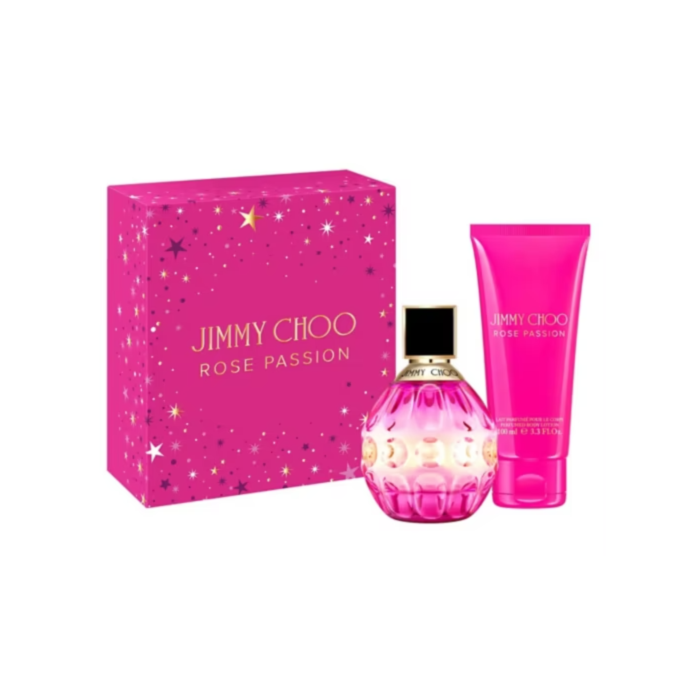 Jimmy Choo Rose Passion Gift Set Eau de Parfum 60ml & Body Lotion 100ml Product details Jimmy Choo Rose Passion is a floral ambery solar ode to a free-spirited woman living and loving life on her own terms. The fragrance opens with the freshness of coconut water and the rich exotic bloom of the frangipani flower. The middle notes combine the headiness of orchids with the seductive jasmine flower. The scent becomes more intense with the sandalwood and the exotic vanilla whose profoundness gives the creation a long-lasting trail. Just like a self-assured woman boldly adorned in pink, Jimmy Choo Rose Passion reflects in its jewelry-like bottle, a sense of playfulness, beautifully blended with glamour, empowerment, and seduction.