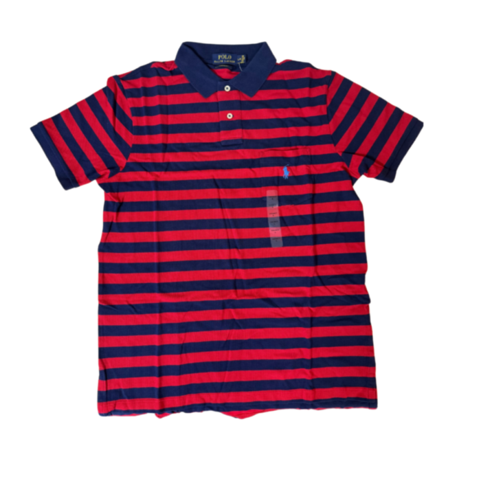Polo Ralph Lauren Mens Polo Shirt with Pocket Red/Navy Blue - Size L